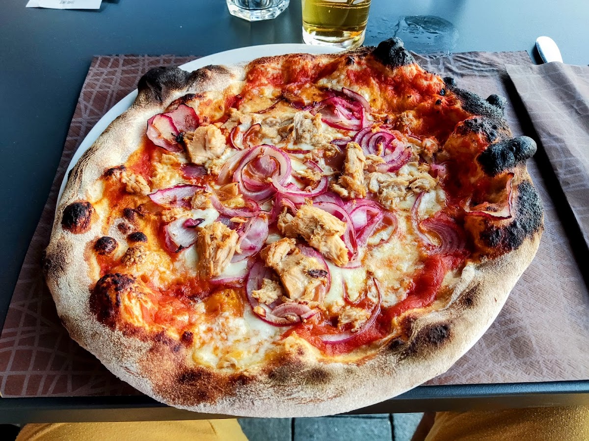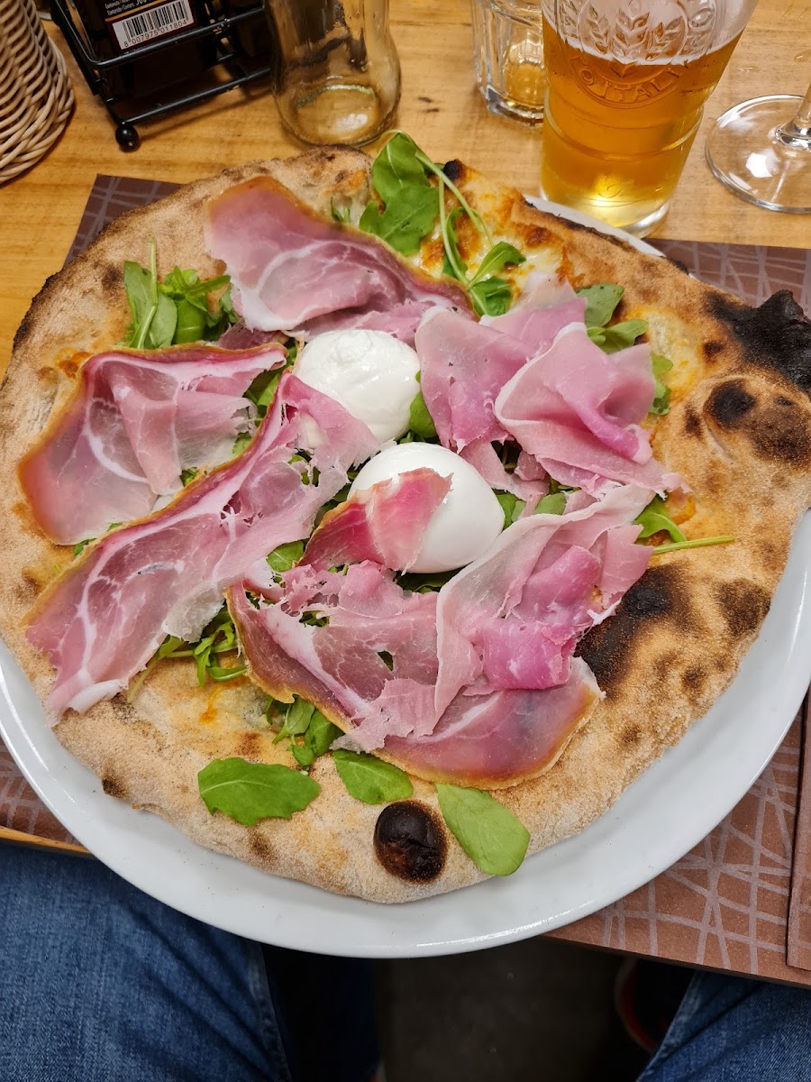 Trovato leggendo le recensioni, ci siamo tornati due sere di fila. Proprietari calabresi (si nota anche dalla presenza della deliziosa 'nduja!) molto gentili e soprattutto piatti ottimi. Le pizze grandi (molto), sottili, non bruciate e ben condite, con mozzarella vera e non quella roba industriale che non è paragonabile. Ottimo anche il salame piccante nella diavola. Ma signori...LE COZZE. Ancora ne parliamo a casa. La prima sera abbiamo provata la zuppa tradizionale (pomodoro), pulendo il piatto con la scarpetta (pane incluso, spesso una pizza bianca già tagliata). Ma la seconda, ordinando quelle gorgonzola e 'nduja... Mamma mia. Altro che scarpetta, mi sono dovuto trattenere a bere mezzo litro di sughetto. Un mix equilibratissimo di sapori, difficile perché entrambi gli ingredienti tendono a distruggere gli altri. Qui non solo li distingui ma senti pure la cozza. Capolavoro. Il tutto a nove euro...! Meritevole anche la fettina di pollo per bambini: non quella roba surgelata alla fast food ma una fetta bella grande di vero petto di pollo. Ciliegina sulla torta: coperto a solo un euro. Unico neo: bibite care, l'acqua a tre euro a bottiglia rischia di costare più del cibo.